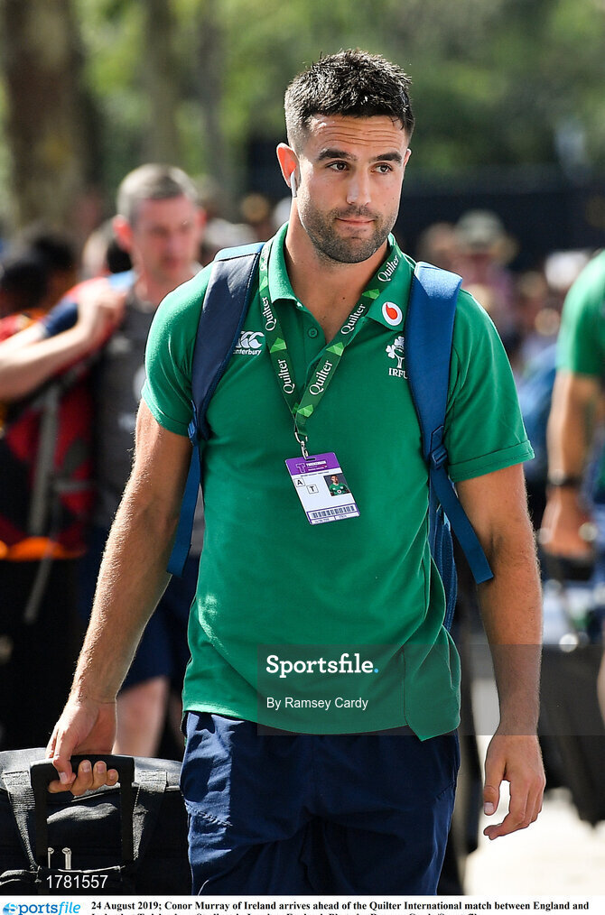 24 August 2019; Conor Murray of Ireland arrives ahead of the Quilter International match between England and Ireland at Twickenham Stadium in London, England. Photo by Ramsey Cardy/Sportsfile