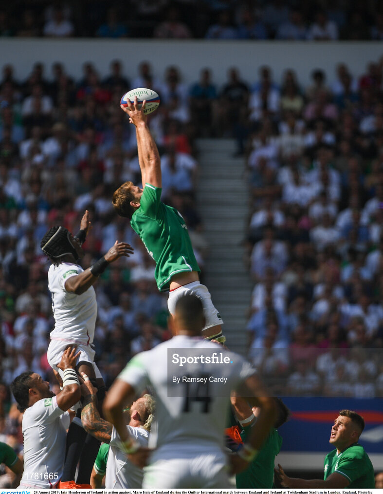 24 August 2019; Iain Henderson of Ireland in action against, Maro Itoje of England during the Quilter International match between England and Ireland at Twickenham Stadium in London, England. Photo by Ramsey Cardy/Sportsfile