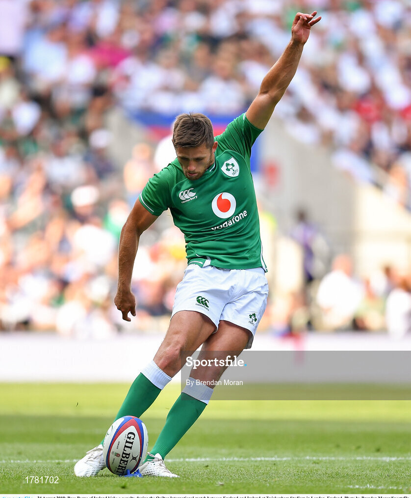 24 August 2019; Ross Byrne of Ireland kicks a penalty during the Quilter International match between England and Ireland at Twickenham Stadium in London, England. Photo by Brendan Moran/Sportsfile