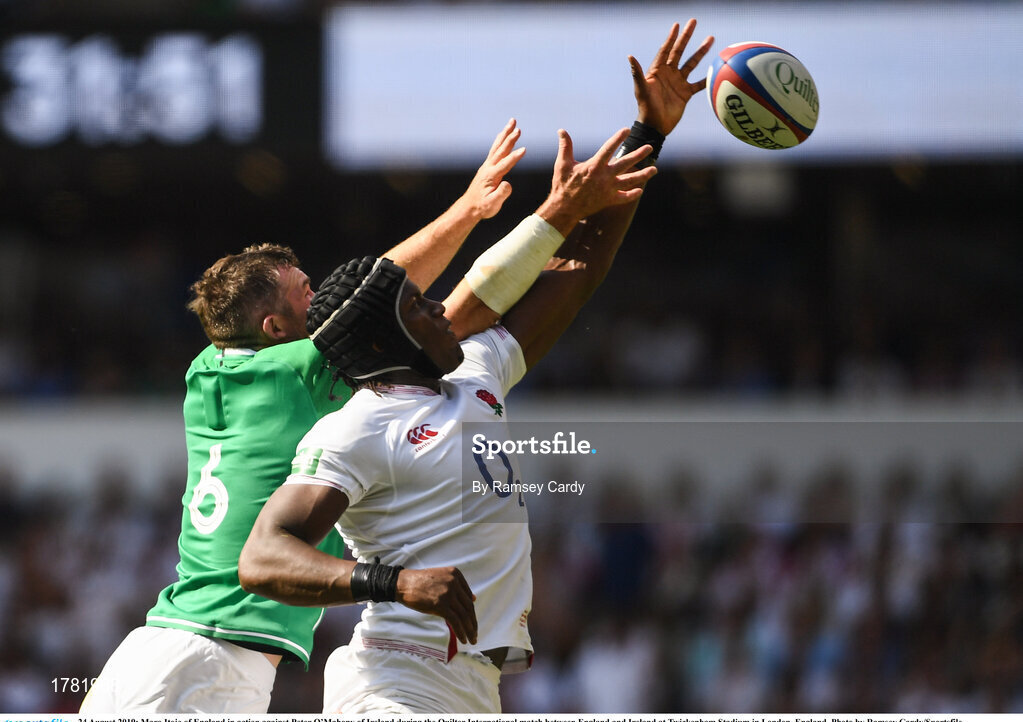24 August 2019; Maro Itoje of England in action against Peter O’Mahony of Ireland during the Quilter International match between England and Ireland at Twickenham Stadium in London, England. Photo by Ramsey Cardy/Sportsfile