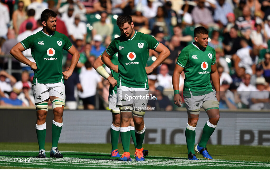 24 August 2019; Ireland players, from left, Jean Kleyn, Iain Henderson, and CJ Stander during the Quilter International match between England and Ireland at Twickenham Stadium in London, England. Photo by Brendan Moran/Sportsfile