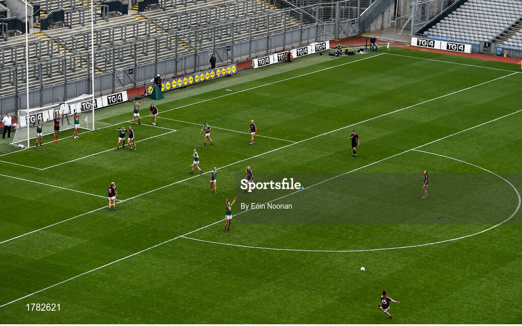 25 August 2019; Róisín Leonard of Galway kicks the winning score from a free during the TG4 All-Ireland Ladies Senior Football Championship Semi-Final match between Galway and Mayo at Croke Park in Dublin. Photo by Eóin Noonan/Sportsfile