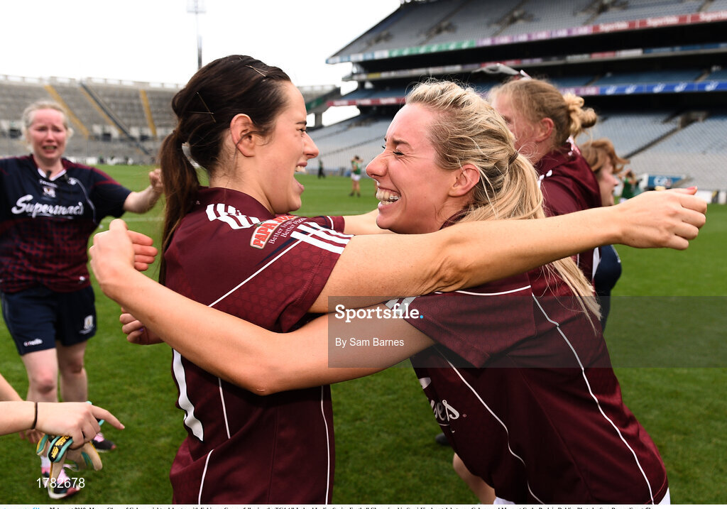 25 August 2019; Megan Glynn of Galway, right celebrates with Fabienne Cooney following the TG4 All-Ireland Ladies Senior Football Championship Semi-Final match between Galway and Mayo at Croke Park in Dublin. Photo by Sam Barnes/Sportsfile