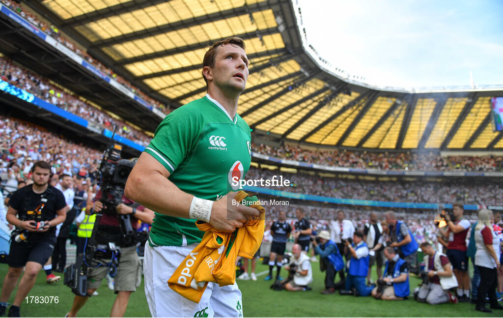 24 August 2019; Jack Carty of Ireland runs out prior to the Quilter International match between England and Ireland at Twickenham Stadium in London, England. Photo by Brendan Moran/Sportsfile
