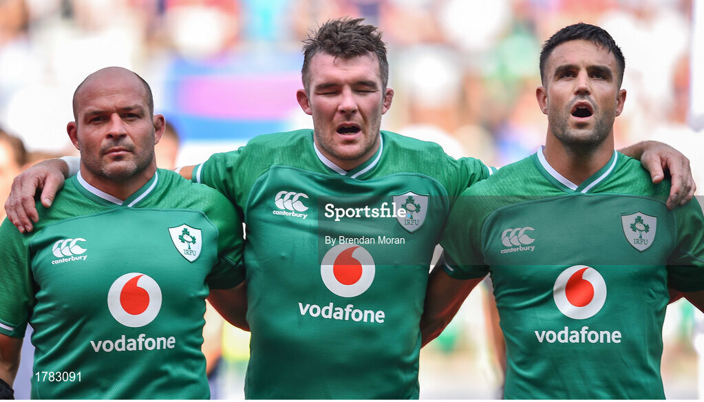 24 August 2019; Ireland players, from left, Rory Best, Peter O’Mahony and Conor Murray prior to the Quilter International match between England and Ireland at Twickenham Stadium in London, England. Photo by Brendan Moran/Sportsfile