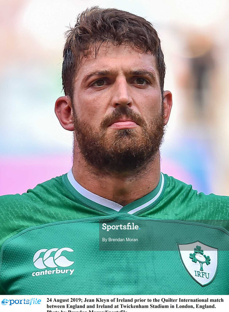 24 August 2019; Jean Kleyn of Ireland prior to the Quilter International match between England and Ireland at Twickenham Stadium in London, England. Photo by Brendan Moran/Sportsfile