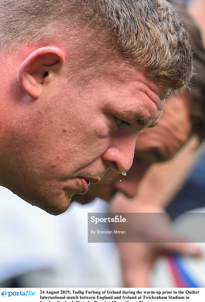 24 August 2019; Tadhg Furlong of Ireland during the warm-up prior to the Quilter International match between England and Ireland at Twickenham Stadium in London, England. Photo by Brendan Moran/Sportsfile