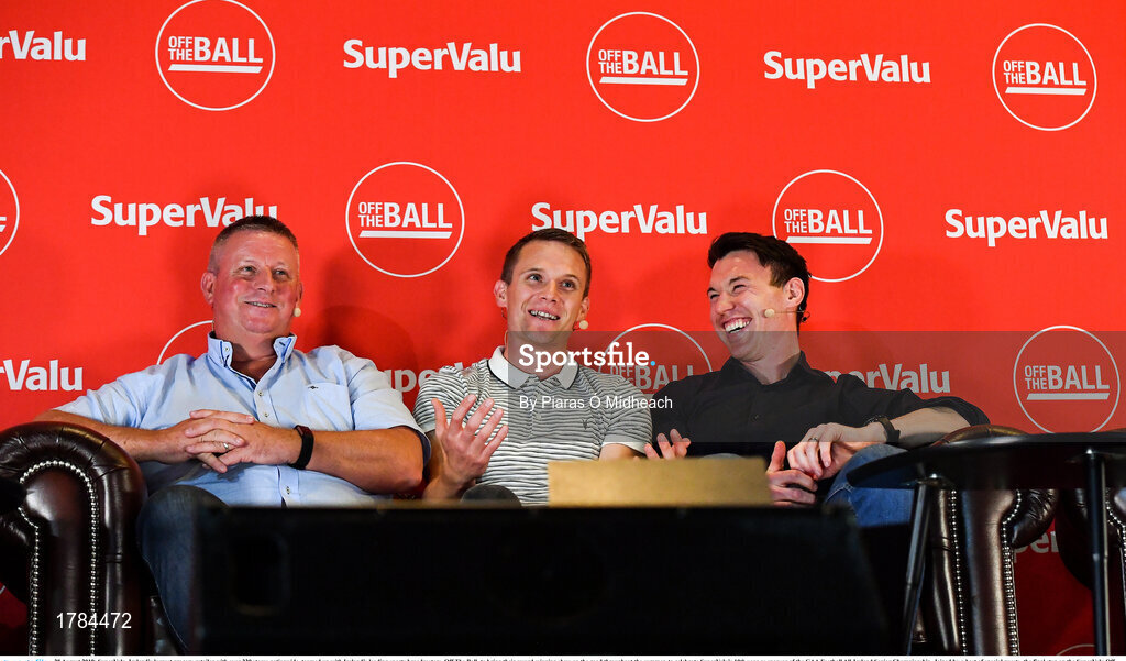 28 August 2019; SuperValu, Ireland’s largest grocery retailer with over 220 stores nationwide, teamed up with Ireland’s leading sports broadcasters, Off The Ball, to bring their award-winning show on the road throughout the summer, to celebrate SuperValu’s 10th year as sponsor of the GAA Football All-Ireland Senior Championship. Joined by a host of special guests, the final stop on the SuperValu Off The Ball roadshow was St Vincent’s GAA Club in Clontarf, which took place on Wednesday 26th August. Pictured at the event are, from left, former Dublin football manager Paul 'Pillar' Caffrey, and former Dublin footballers Mossy Quinn and Eamon Fennell. Photo by Piaras Ó Mídheach/Sportsfile