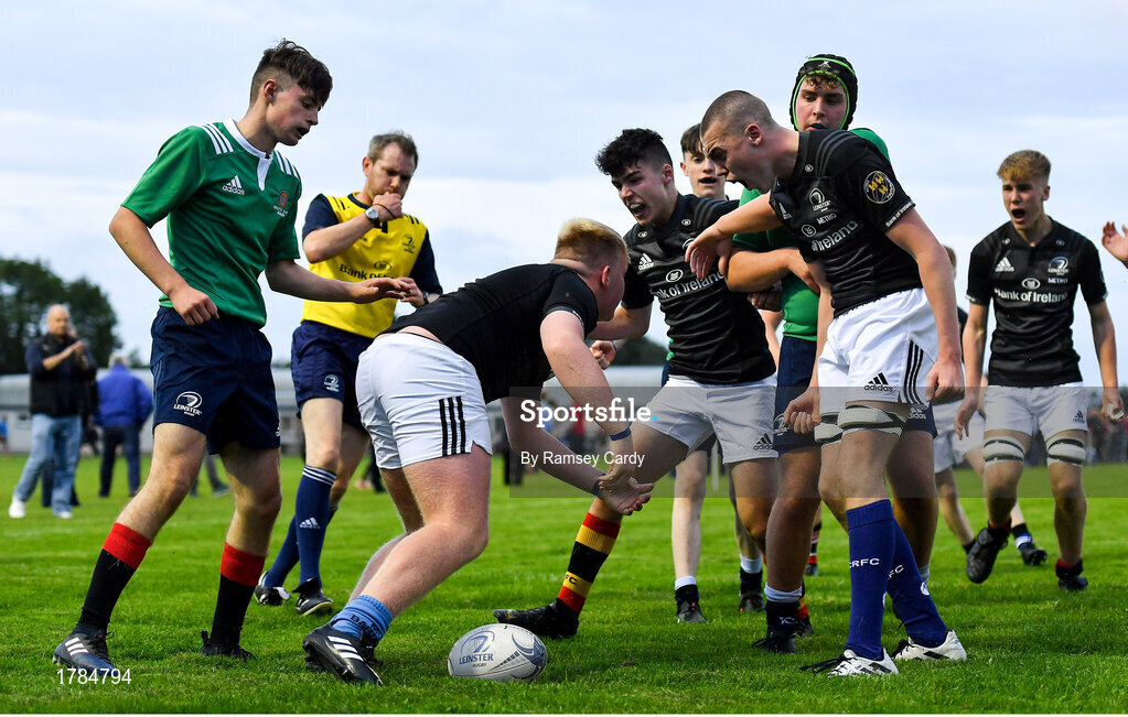 30 August 2019; Evan Gernon, right, celebrates a try by Metro team-mate Colin Byrne during the Shane Horgan Cup Round 1 match between South East and Metro at Cill Dara RFC in Kildare. Photo by Ramsey Cardy/Sportsfile