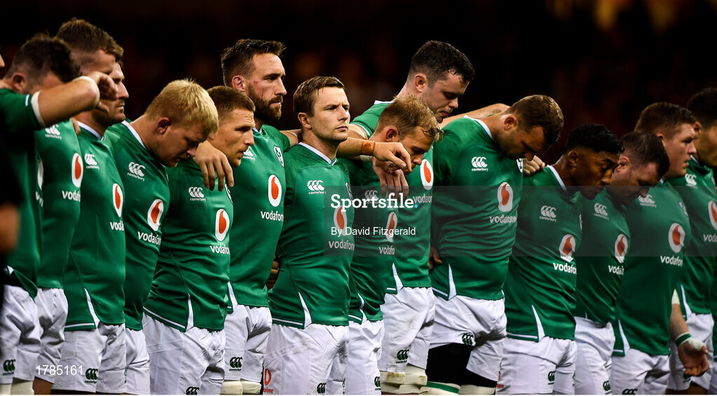 31 August 2019; Ireland players following the national anthem prior to the Under Armour Summer Series 2019 match between Wales and Ireland at the Principality Stadium in Cardiff, Wales. Photo by David Fitzgerald/Sportsfile