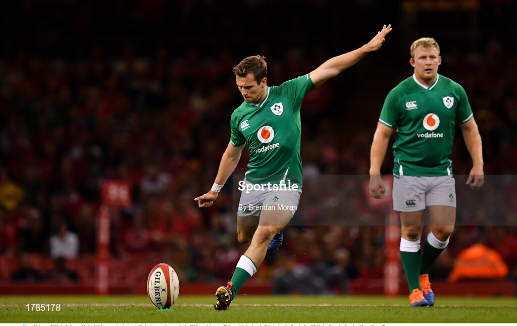 31 August 2019; Jack Carty of Ireland kicks a penalty during the Under Armour Summer Series 2019 match between Wales and Ireland at the Principality Stadium in Cardiff, Wales. Photo by Brendan Moran/Sportsfile
