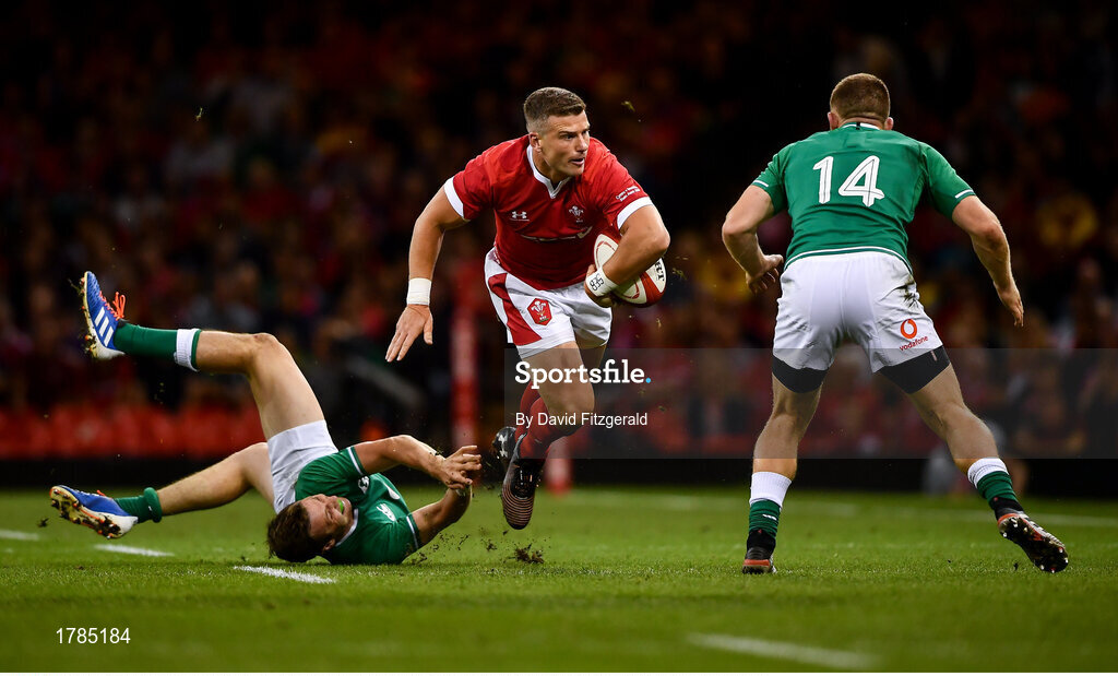 31 August 2019; Scott Williams of Wales is tackled by Jack Carty of Ireland during the Under Armour Summer Series 2019 match between Wales and Ireland at the Principality Stadium in Cardiff, Wales. Photo by David Fitzgerald/Sportsfile