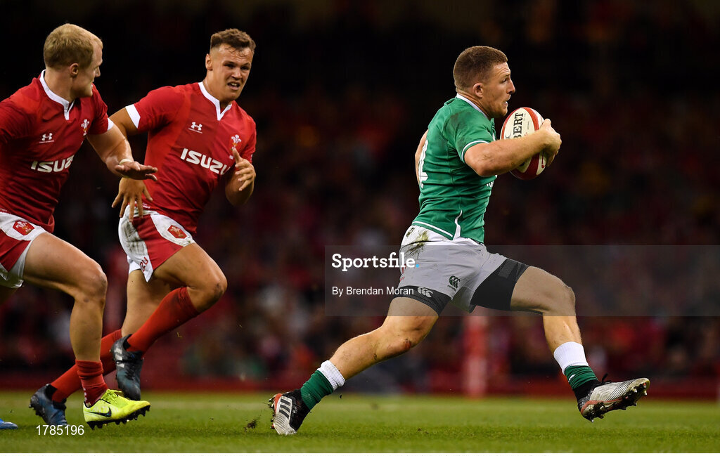 31 August 2019; Andrew Conway of Ireland makes a break to set up his side's first try during the Under Armour Summer Series 2019 match between Wales and Ireland at the Principality Stadium in Cardiff, Wales. Photo by Brendan Moran/Sportsfile