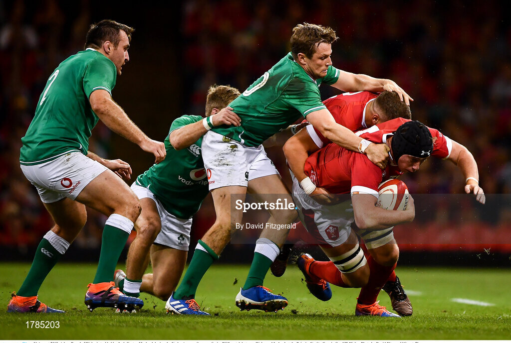 31 August 2019; Adam Beard of Wales is tackled by Jack Carty of Ireland during the Under Armour Summer Series 2019 match between Wales and Ireland at the Principality Stadium in Cardiff, Wales. Photo by David Fitzgerald/Sportsfile