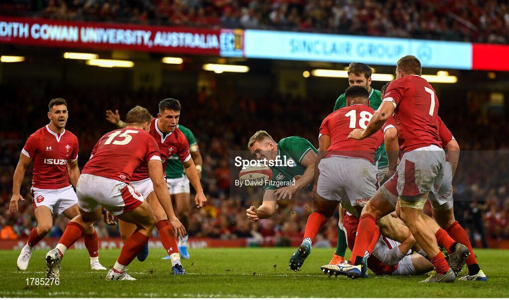 31 August 2019; Chris Farrell of Ireland knocks the ball forward just short of the try-line during the Under Armour Summer Series 2019 match between Wales and Ireland at the Principality Stadium in Cardiff, Wales. Photo by David Fitzgerald/Sportsfile