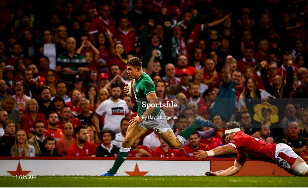 31 August 2019; Garry Ringrose of Ireland on his way to scoring a try which was subsequently disallowed during the Under Armour Summer Series 2019 match between Wales and Ireland at the Principality Stadium in Cardiff, Wales. Photo by David Fitzgerald/Sportsfile