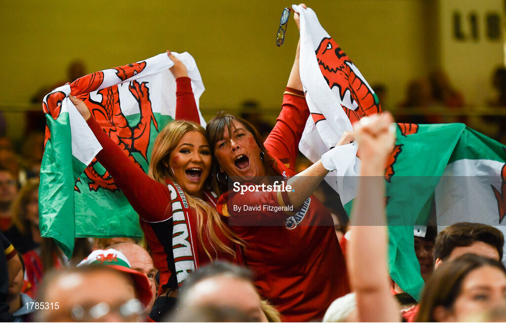 31 August 2019; Wales supporters celebrate a try during the Under Armour Summer Series 2019 match between Wales and Ireland at the Principality Stadium in Cardiff, Wales. Photo by David Fitzgerald/Sportsfile