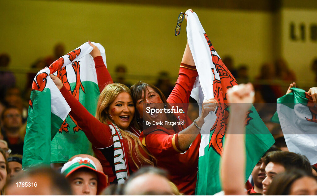 31 August 2019; Wales supporters celebrate a try during the Under Armour Summer Series 2019 match between Wales and Ireland at the Principality Stadium in Cardiff, Wales. Photo by David Fitzgerald/Sportsfile