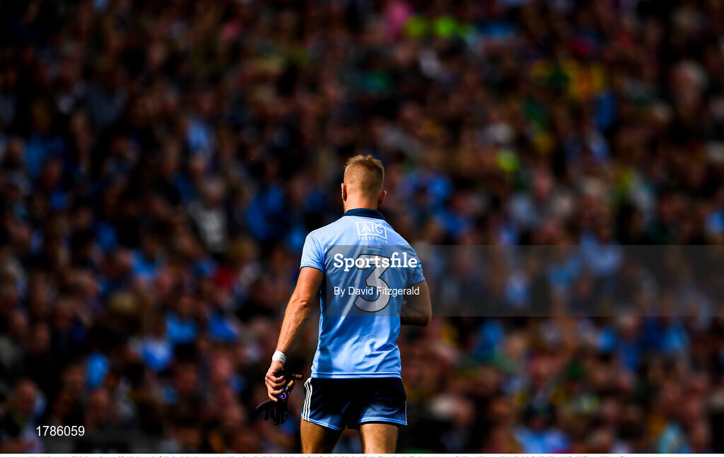 1 September 2019; Jonny Cooper of Dublin leaves the field after being shown a red card by referee David Gough during the GAA Football All-Ireland Senior Championship Final match between Dublin and Kerry at Croke Park in Dublin. Photo by David Fitzgerald/Sportsfile
