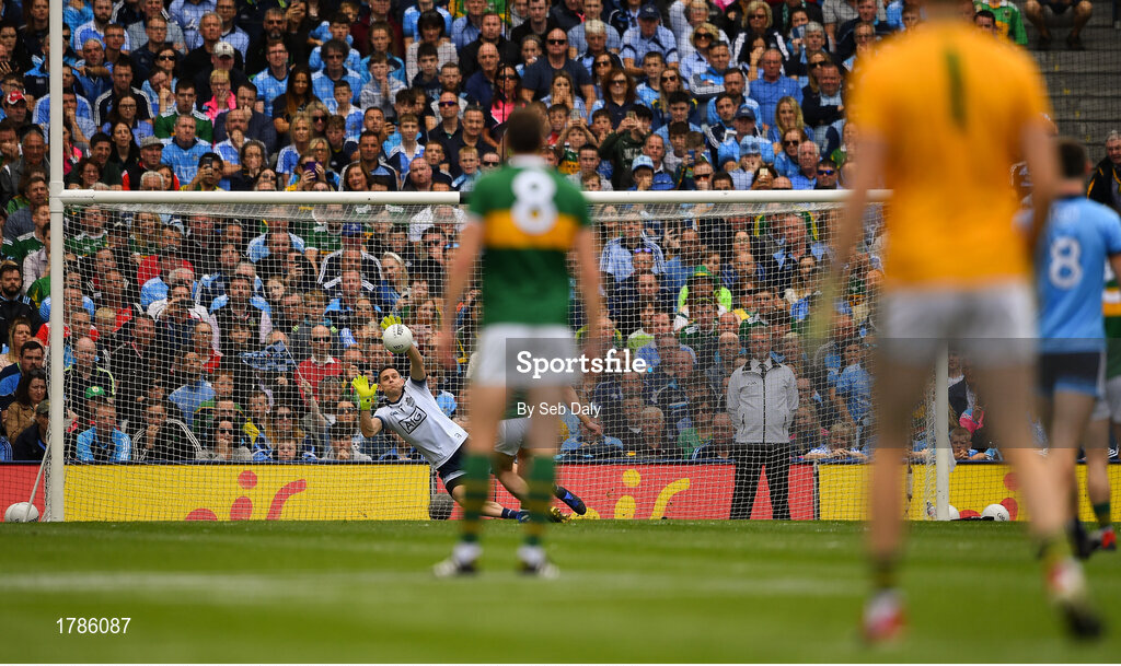 1 September 2019; Stephen Cluxton of Dublin saves a penalty during the GAA Football All-Ireland Senior Championship Final match between Dublin and Kerry at Croke Park in Dublin. Photo by Seb Daly/Sportsfile