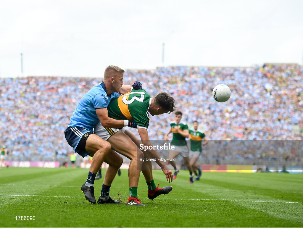 1 September 2019; David Clifford of Kerry is fouled by Jonny Cooper of Dublin during the GAA Football All-Ireland Senior Championship Final match between Dublin and Kerry at Croke Park in Dublin. Photo by David Fitzgerald/Sportsfile
