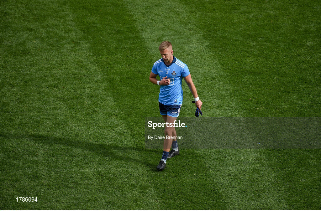1 September 2019; A dejected Jonny Cooper of Dublin leaves the field after being sent off during the GAA Football All-Ireland Senior Championship Final match between Dublin and Kerry at Croke Park in Dublin. Photo by Daire Brennan/Sportsfile