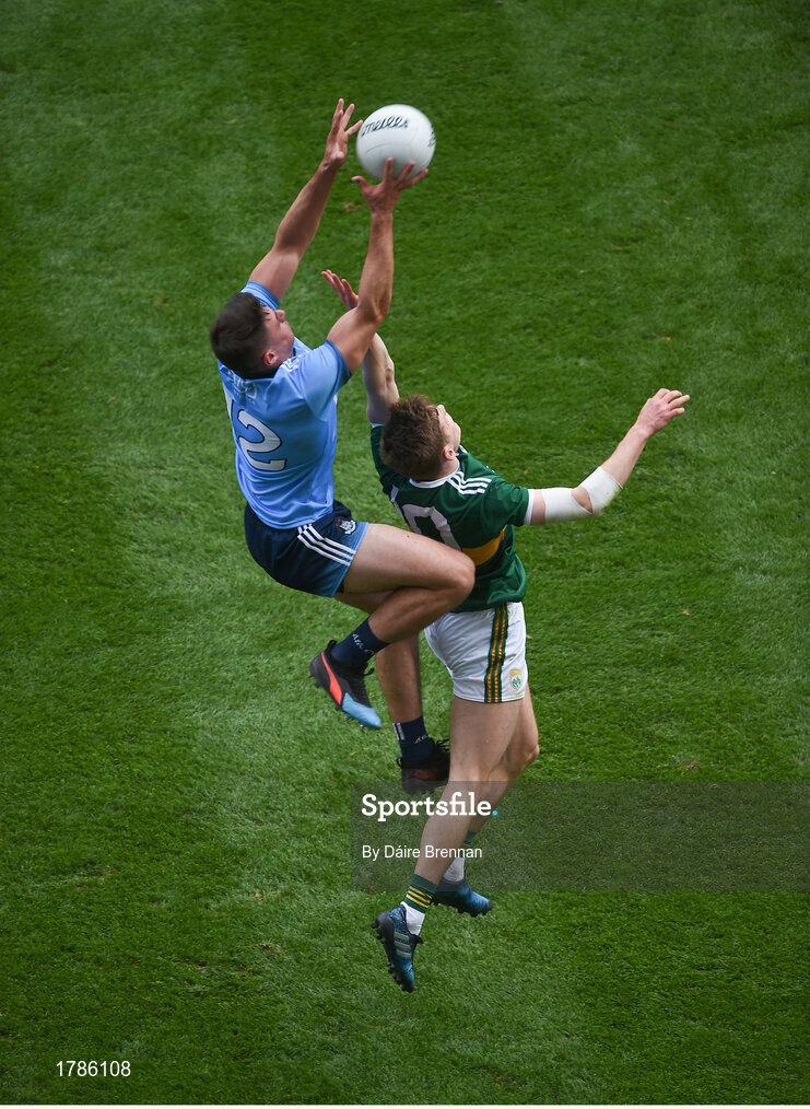 1 September 2019; Brian Howard of Dublin in action against Gavin White of Kerry during the GAA Football All-Ireland Senior Championship Final match between Dublin and Kerry at Croke Park in Dublin. Photo by Daire Brennan/Sportsfile