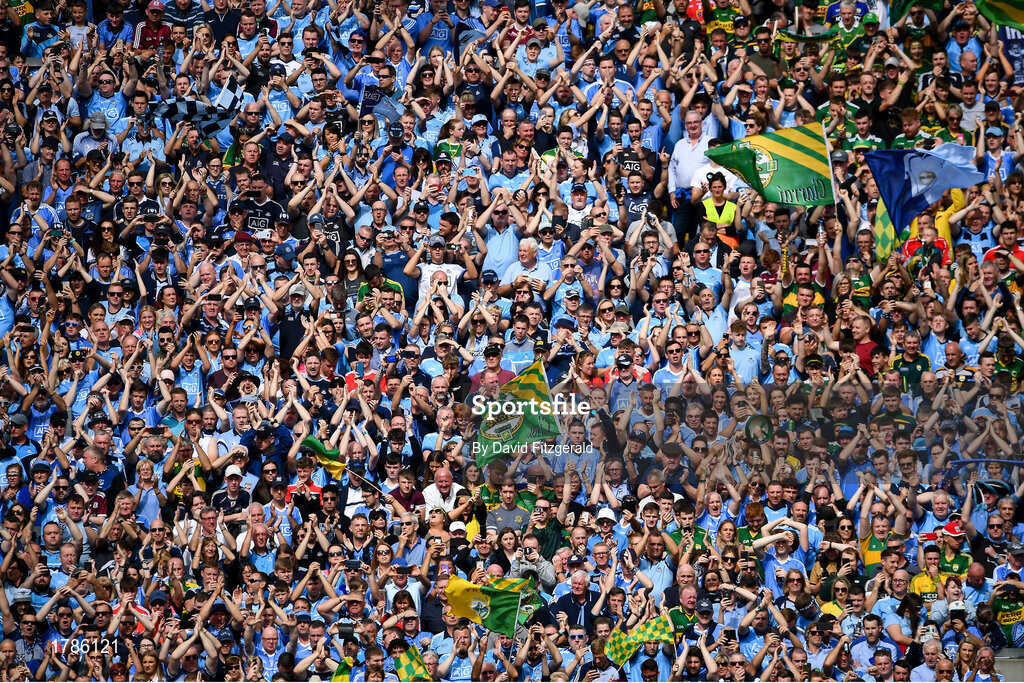 1 September 2019; Fans from hill 16 cheer on during the GAA Football All-Ireland Senior Championship Final match between Dublin and Kerry at Croke Park in Dublin. Photo by David Fitzgerald/Sportsfile
