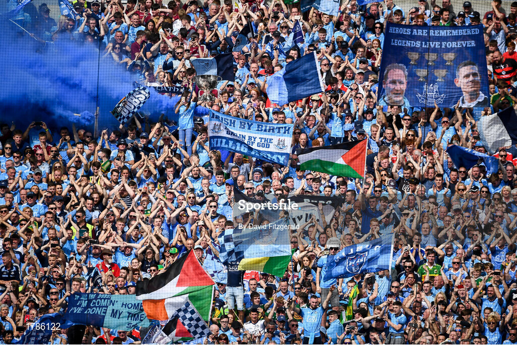 1 September 2019; Fans from hill 16 cheer on during the GAA Football All-Ireland Senior Championship Final match between Dublin and Kerry at Croke Park in Dublin. Photo by David Fitzgerald/Sportsfile