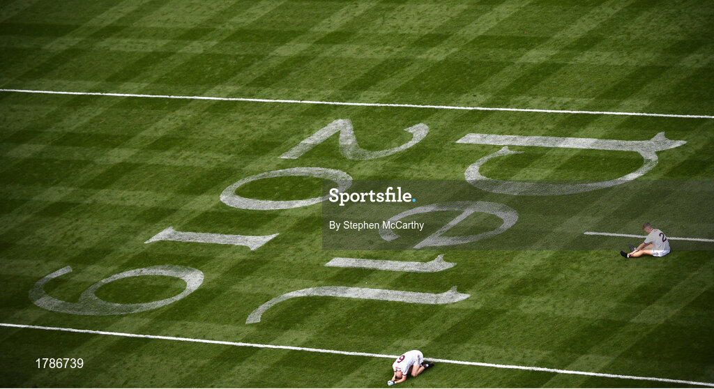 1 September 2019; Ethan Fiorentini, 6, and Jonathan McGrath of Galway following their defeat in the Electric Ireland GAA Football All-Ireland Minor Championship Final match between Cork and Galway at Croke Park in Dublin. Photo by Stephen McCarthy/Sportsfile