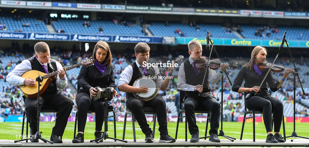 1 September 2019; Kilshannig Scór group performing at half time during the Electric Ireland GAA Football All-Ireland Minor Championship Final match between Cork and Galway at Croke Park in Dublin. Photo by Eóin Noonan/Sportsfile