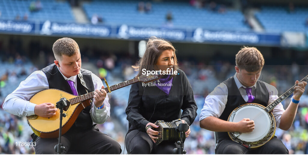 1 September 2019; Kilshannig Scór group performing at half time during the Electric Ireland GAA Football All-Ireland Minor Championship Final match between Cork and Galway at Croke Park in Dublin. Photo by Eóin Noonan/Sportsfile