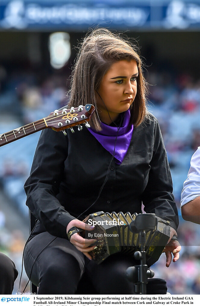 1 September 2019; Kilshannig Scór group performing at half time during the Electric Ireland GAA Football All-Ireland Minor Championship Final match between Cork and Galway at Croke Park in Dublin. Photo by Eóin Noonan/Sportsfile