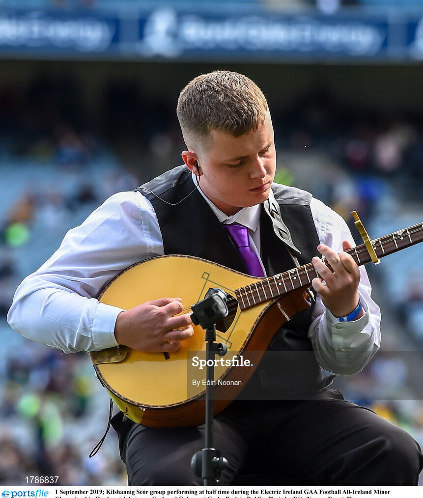1 September 2019; Kilshannig Scór group performing at half time during the Electric Ireland GAA Football All-Ireland Minor Championship Final match between Cork and Galway at Croke Park in Dublin. Photo by Eóin Noonan/Sportsfile