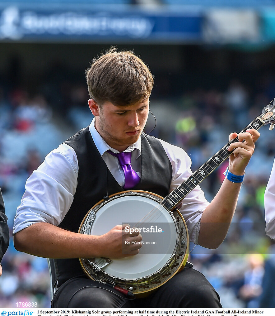 1 September 2019; Kilshannig Scór group performing at half time during the Electric Ireland GAA Football All-Ireland Minor Championship Final match between Cork and Galway at Croke Park in Dublin. Photo by Eóin Noonan/Sportsfile