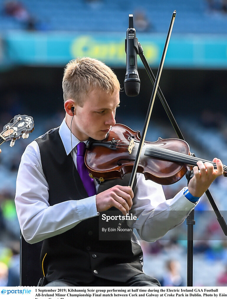 1 September 2019; Kilshannig Scór group performing at half time during the Electric Ireland GAA Football All-Ireland Minor Championship Final match between Cork and Galway at Croke Park in Dublin. Photo by Eóin Noonan/Sportsfile