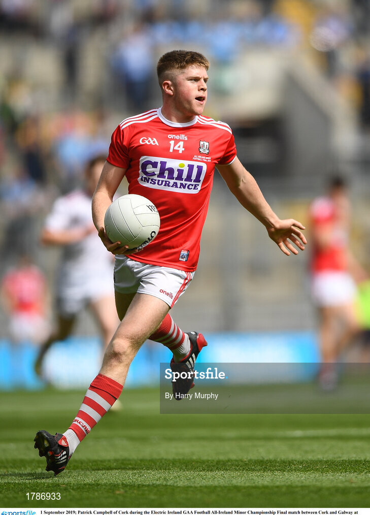1 September 2019; Patrick Campbell of Cork during the Electric Ireland GAA Football All-Ireland Minor Championship Final match between Cork and Galway at Croke Park in Dublin. Photo by Harry Murphy/Sportsfile