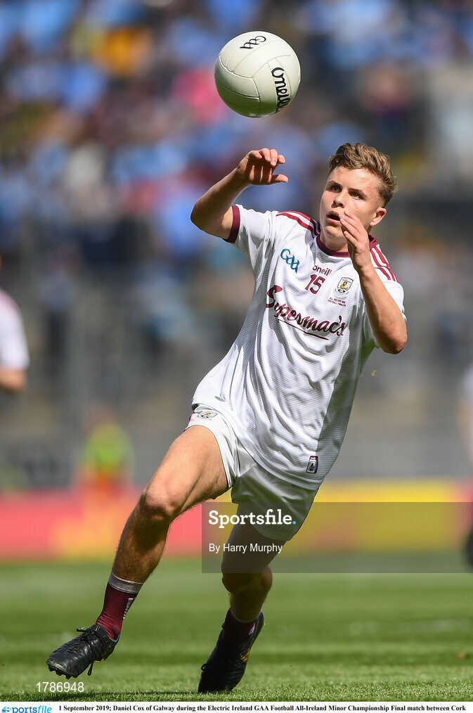 1 September 2019; Daniel Cox of Galway during the Electric Ireland GAA Football All-Ireland Minor Championship Final match between Cork and Galway at Croke Park in Dublin. Photo by Harry Murphy/Sportsfile
