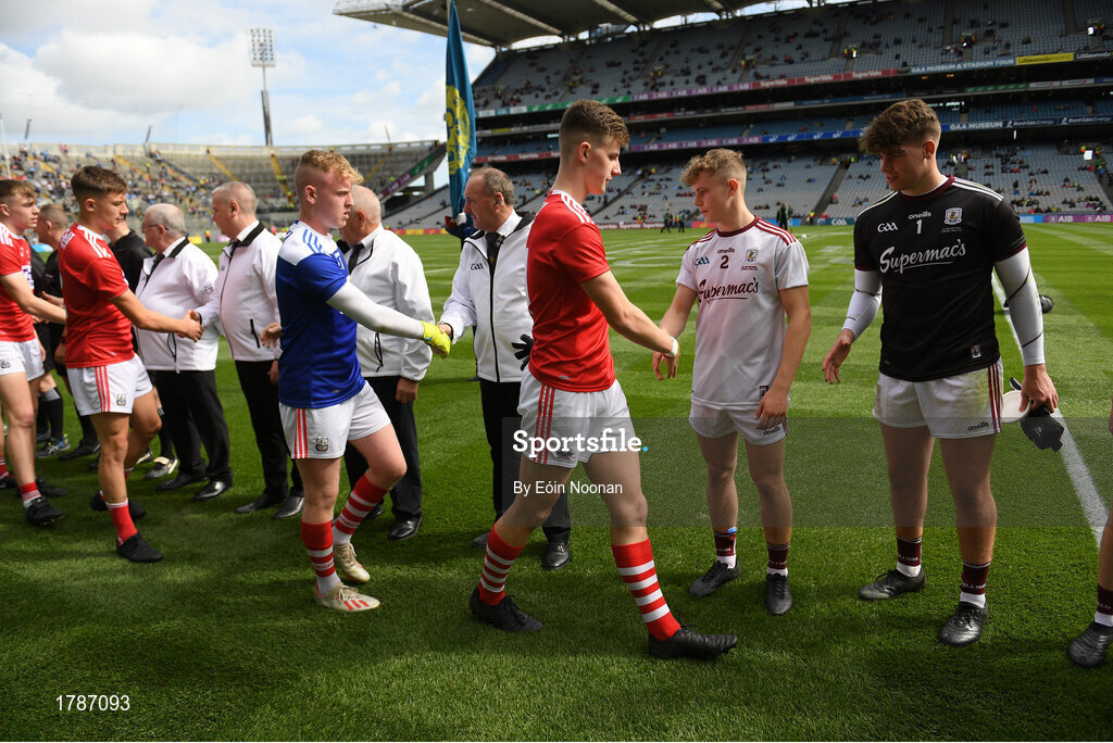 1 September 2019; Respect hand shake prior to the Electric Ireland GAA Football All-Ireland Minor Championship Final match between Cork and Galway at Croke Park in Dublin. Photo by Eóin Noonan/Sportsfile