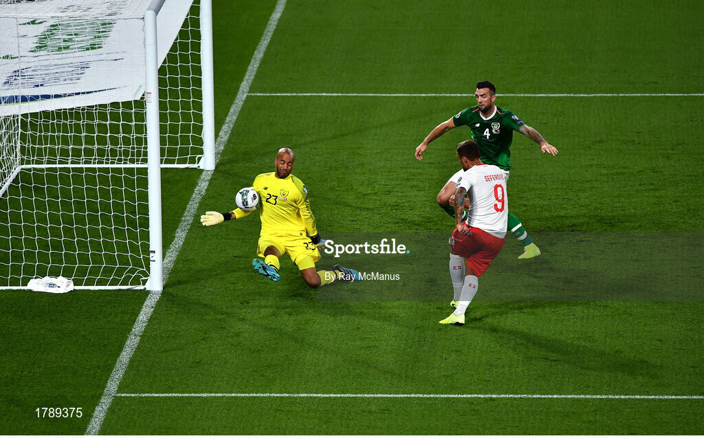 5 September 2019; Haris Seferovic of Switzerland has a shot on goal which was subsequently saved by Darren Randolph of Republic of Ireland during the UEFA EURO2020 Qualifier Group D match between Republic of Ireland and Switzerland at Aviva Stadium, Dublin. Photo by Ray McManus/Sportsfile