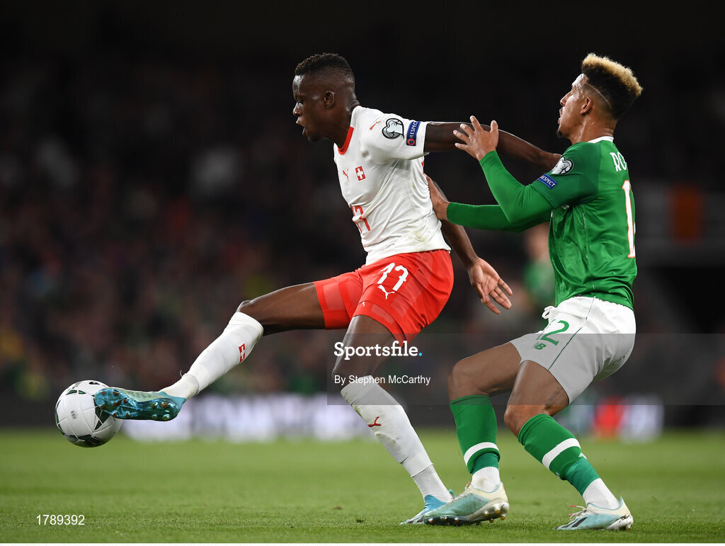5 September 2019; Denis Zakaria of Switzerland in action against Callum Robinson of Republic of Ireland during the UEFA EURO2020 Qualifier Group D match between Republic of Ireland and Switzerland at Aviva Stadium, Dublin. Photo by Stephen McCarthy/Sportsfile