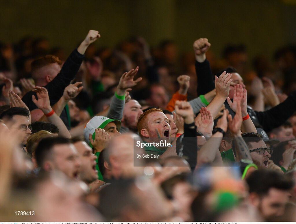 5 September 2019; Supporters during the UEFA EURO2020 Qualifier Group D match between Republic of Ireland and Switzerland at Aviva Stadium, Lansdowne Road in Dublin. Photo by Seb Daly/Sportsfile