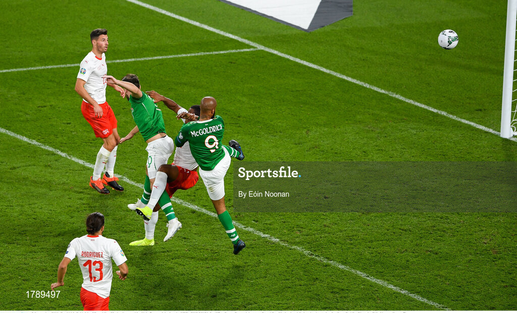 5 September 2019; David McGoldrick of Republic of Ireland scores his side's first goal during the UEFA EURO2020 Qualifier Group D match between Republic of Ireland and Switzerland at Aviva Stadium, Dublin. Photo by Eóin Noonan/Sportsfile