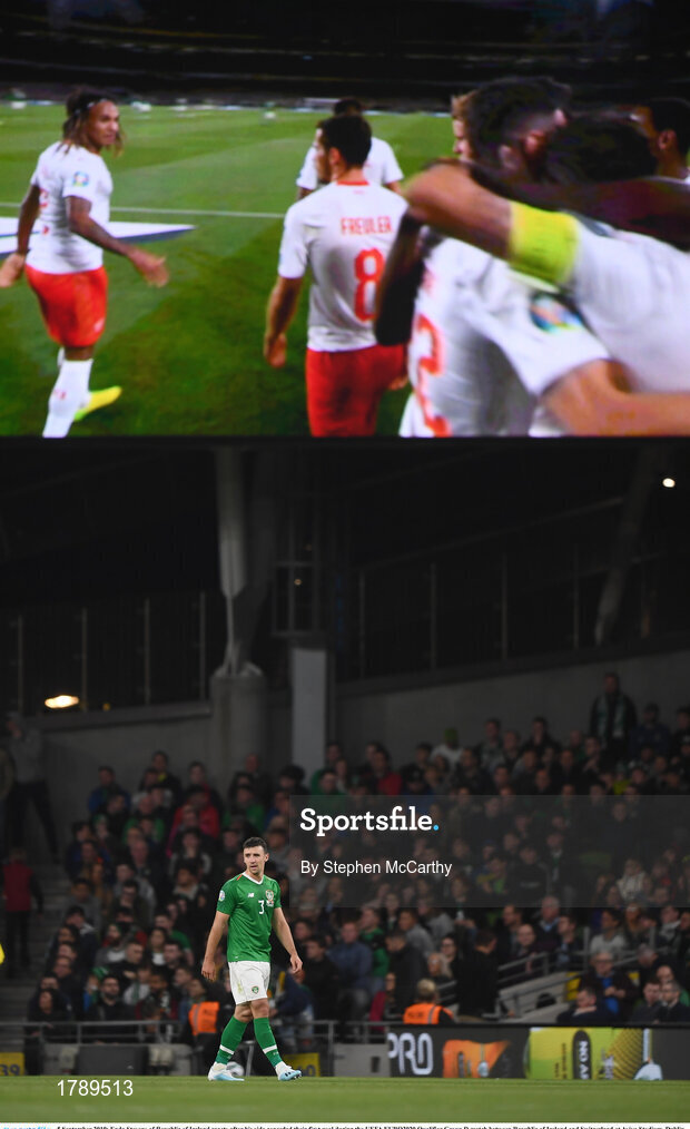 5 September 2019; Enda Stevens of Republic of Ireland reacts after his side conceded their first goal during the UEFA EURO2020 Qualifier Group D match between Republic of Ireland and Switzerland at Aviva Stadium, Dublin. Photo by Stephen McCarthy/Sportsfile