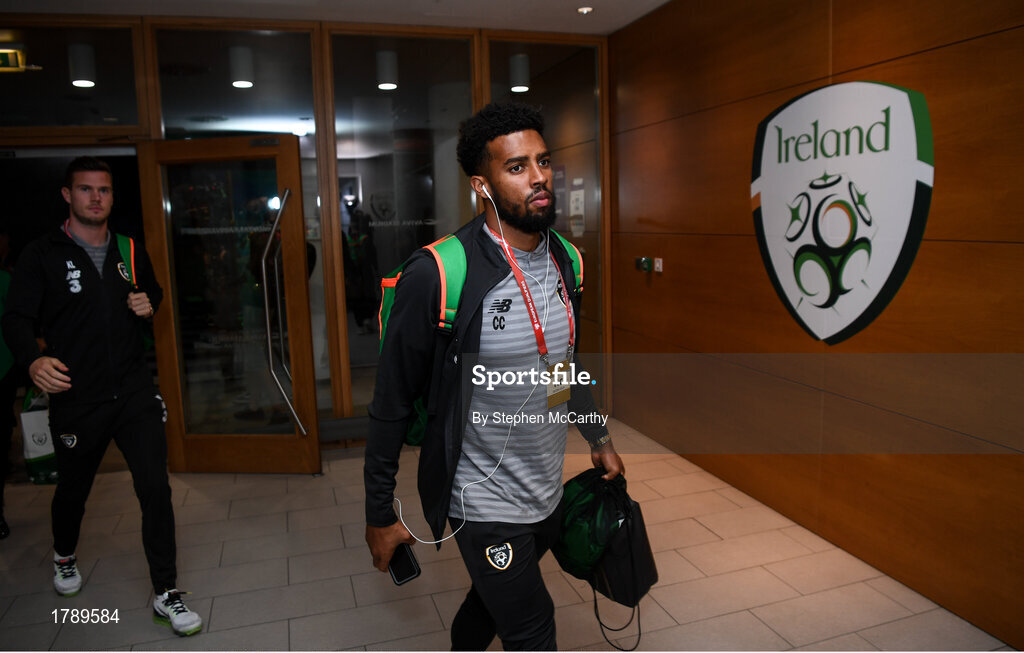5 September 2019; Cyrus Christie of Republic of Ireland arrives for the UEFA EURO2020 Qualifier Group D match between Republic of Ireland and Switzerland at Aviva Stadium, Lansdowne Road in Dublin. Photo by Stephen McCarthy/Sportsfile