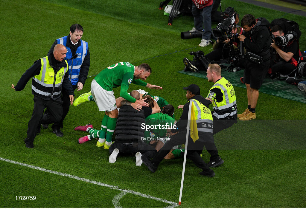 5 September 2019; A pitch invader is removed from the field during the UEFA EURO2020 Qualifier Group D match between Republic of Ireland and Switzerland at Aviva Stadium, Lansdowne Road in Dublin. Photo by Eóin Noonan/Sportsfile