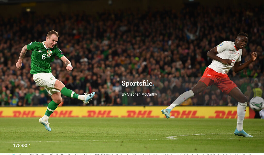 5 September 2019; Glenn Whelan of Republic of Ireland has a shot on goal during the UEFA EURO2020 Qualifier Group D match between Republic of Ireland and Switzerland at Aviva Stadium, Lansdowne Road in Dublin. Photo by Stephen McCarthy/Sportsfile