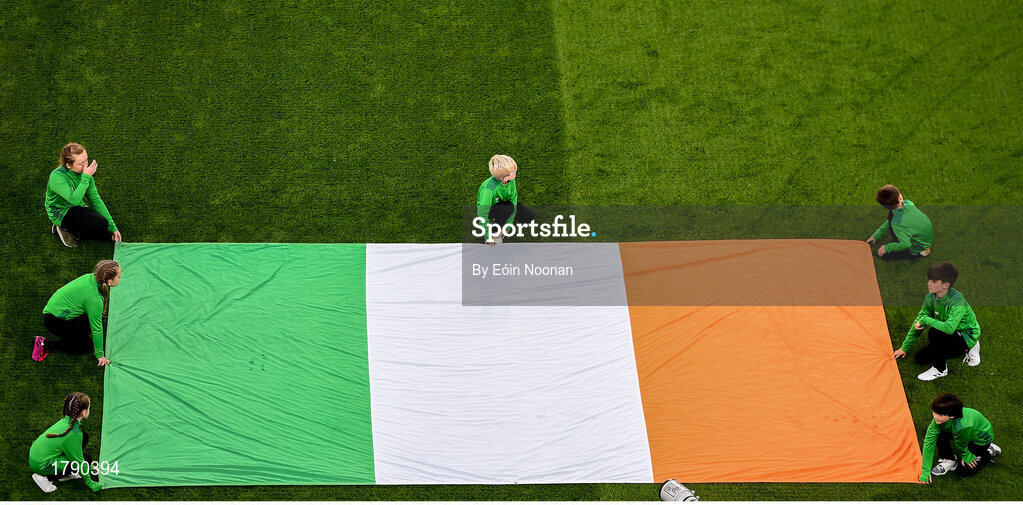 5 September 2019; Flagbearers during the UEFA EURO2020 Qualifier Group D match between Republic of Ireland and Switzerland at Aviva Stadium, Lansdowne Road in Dublin. Photo by Eóin Noonan/Sportsfile