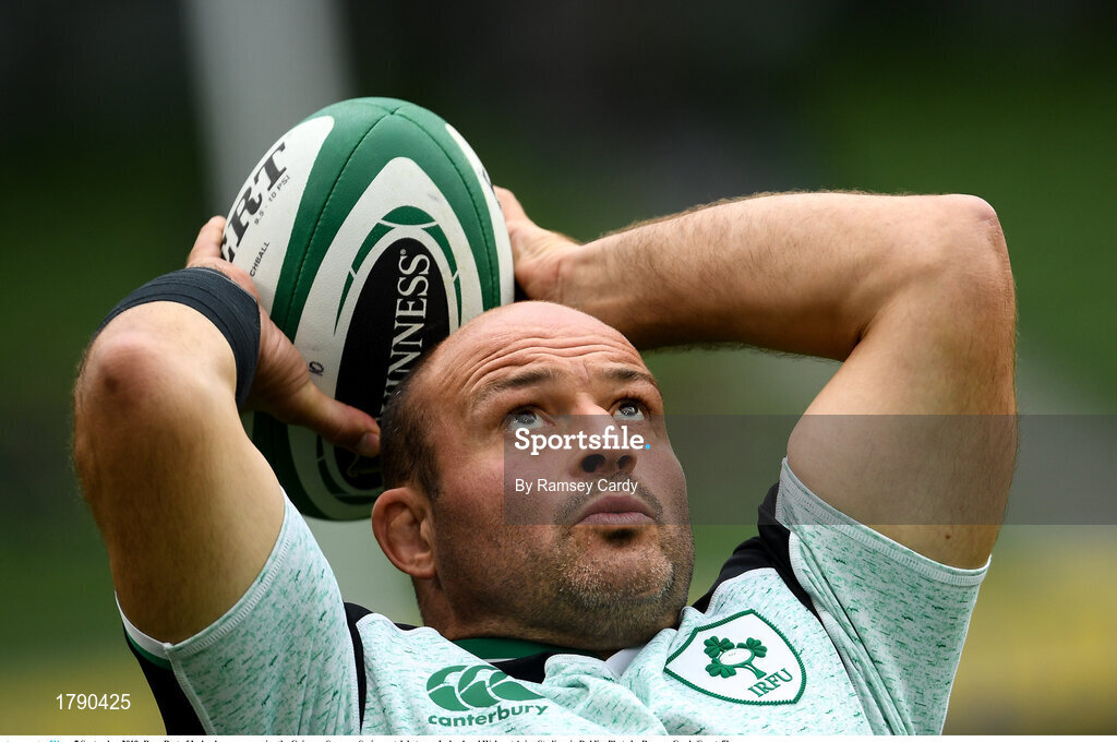 7 September 2019; Rory Best of Ireland warms up prior the Guinness Summer Series match between Ireland and Wales at Aviva Stadium in Dublin. Photo by Ramsey Cardy/Sportsfile