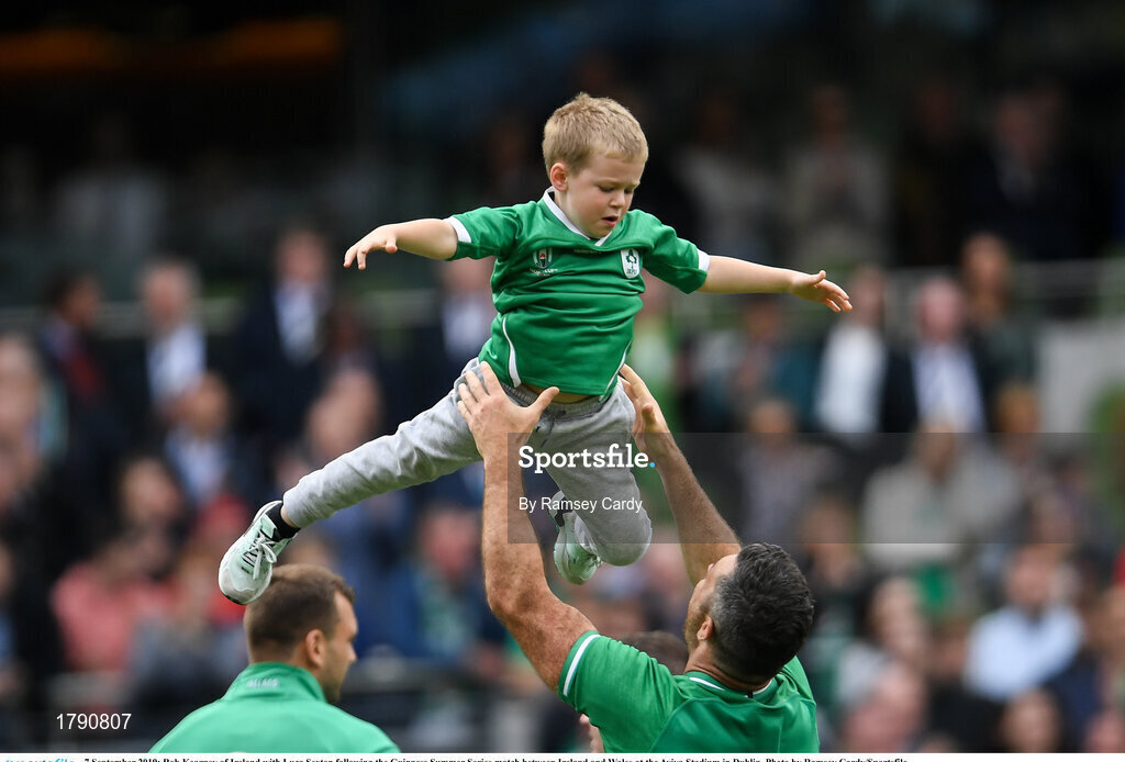7 September 2019; Rob Kearney of Ireland with Luca Sexton following the Guinness Summer Series match between Ireland and Wales at the Aviva Stadium in Dublin. Photo by Ramsey Cardy/Sportsfile